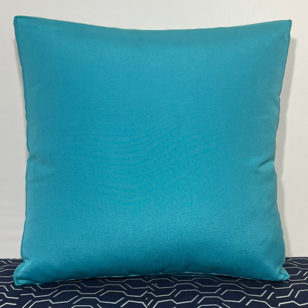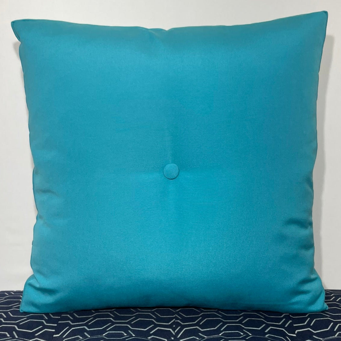 Our Hero Solid color pillows are a step above, ready to be a supporting character, or shine on their own. Featuring an Aruba front and back and constructed with a matching Aruba tailored side panel. Select with or without matching covered buttons.