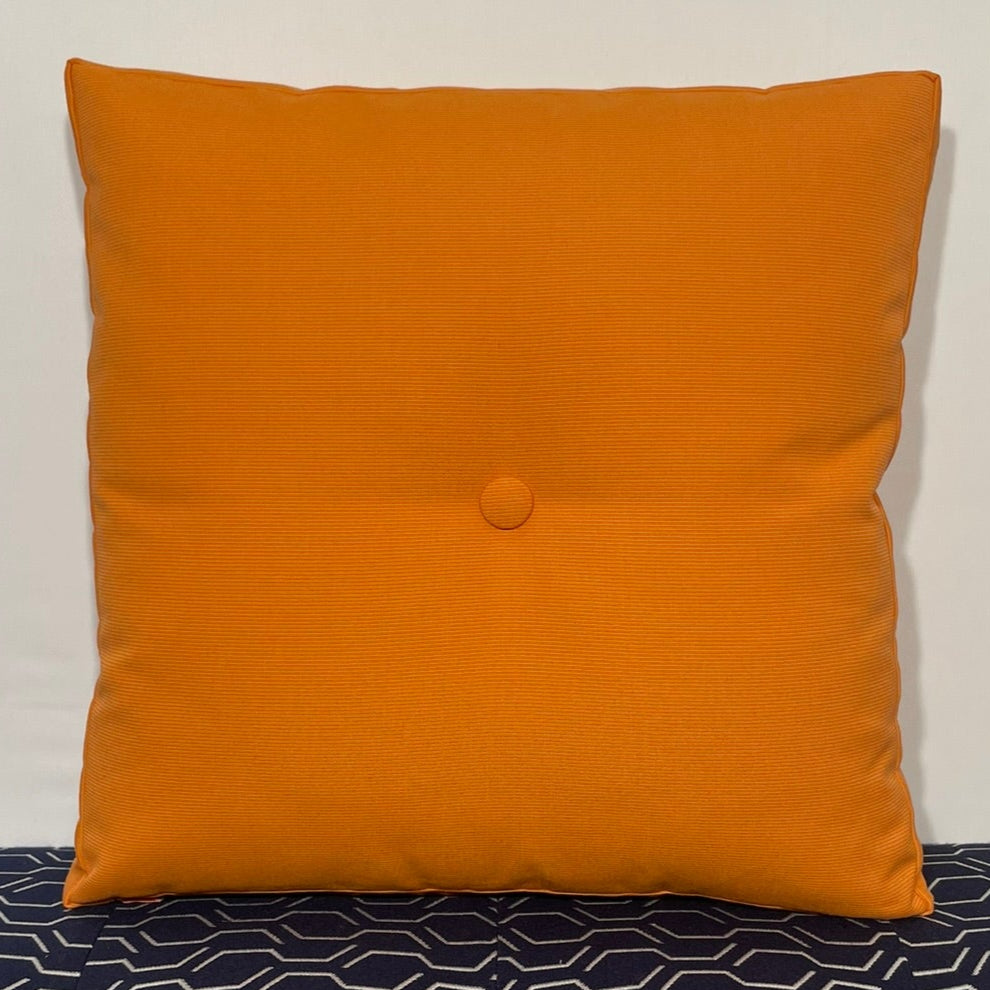 Our Hero Solid color pillows are a step above, ready to be a supporting character, or shine on their own.  Featuring a Tangerine front and back and constructed with a matching Tangerine tailored side panel.  Select with or without matching covered buttons.