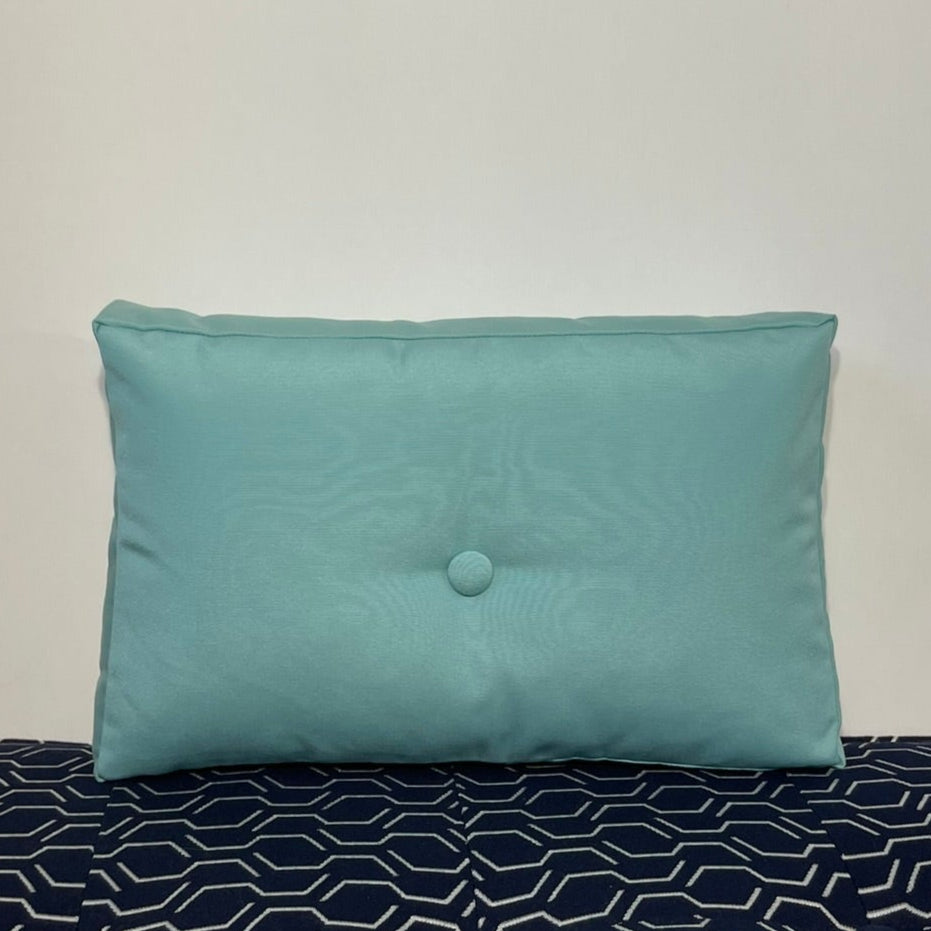 Our Hero Solid color pillows are a step above, ready to be a supporting character, or shine on their own. Featuring a Glacier front and back and constructed with a matching Glacier tailored side panel. Select with or without matching covered buttons.