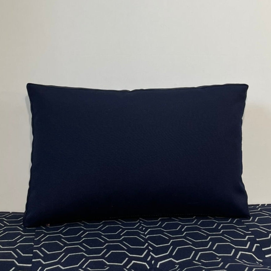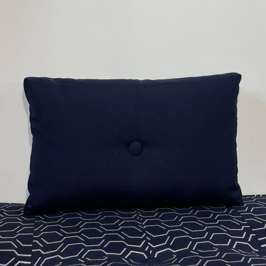 Our Hero Solid color pillows are a step above, ready to be a supporting character, or shine on their own. Featuring a Navy front and back and constructed with a matching Navy tailored side panel. Select with or without matching covered buttons.
